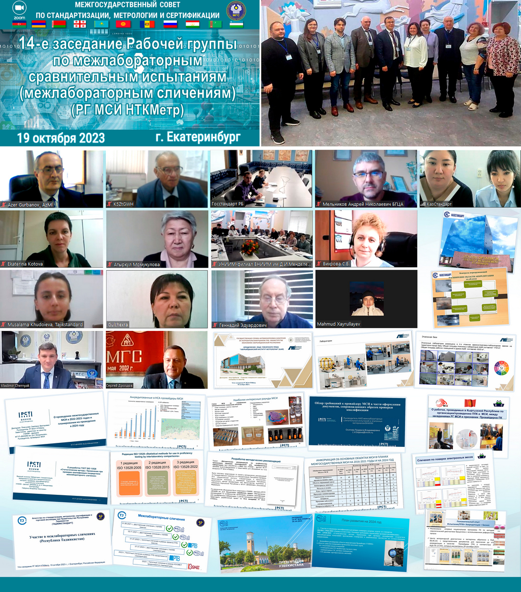 19 октября 2023 года в г. Екатеринбурге, Российская Федерация, в гибридном формате состоялось 14-е заседание Рабочей группы по межлабораторным сравнительным испытаниям (межлабораторным сличениям) Научно-технической комиссии по метрологии (РГ МСИ НТКМетр)