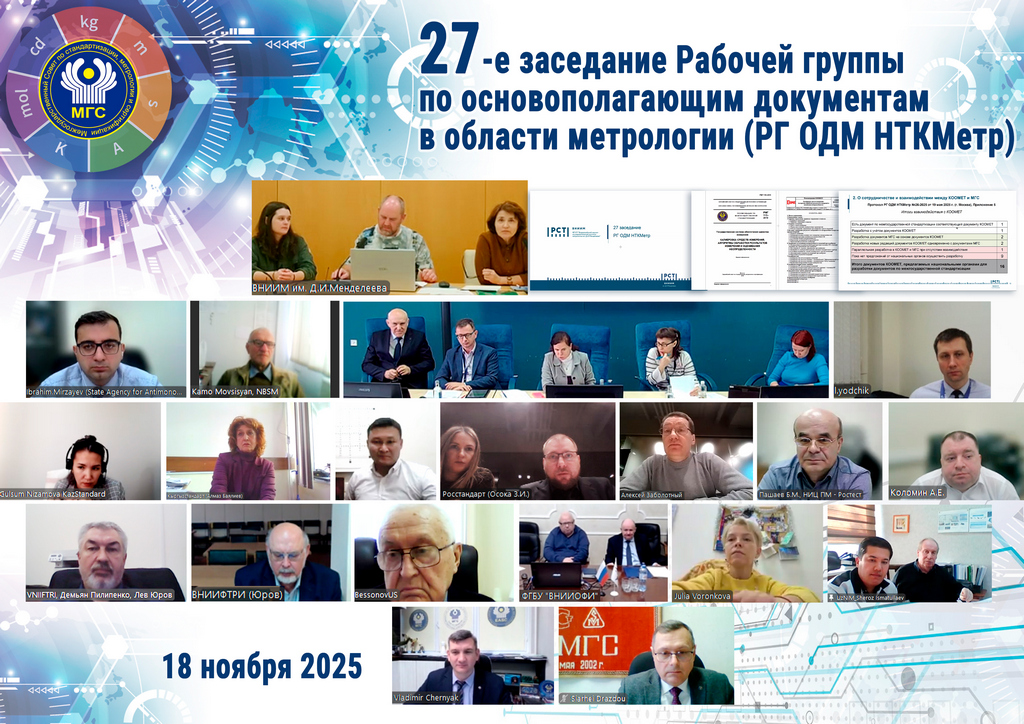 18 ноября 2025 года проведено 27-е заседание Рабочей группы по основополагающим документам в области метрологии Научно-технической комиссии по метрологии (РГ ОДМ НТКМетр) Межгосударственного совета по стандартизации, метрологии и сертификации»