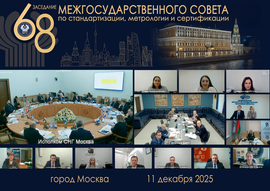 11 декабря 2025 года в Российской Федерации в г.Москва на площадке Исполнительного комитета СНГ состоялось 68-е заседание Межгосударственного совета по стандартизации, метрологии и сертификации государств-участников Соглашения о проведении согласованной политики в области стандартизации, метрологии и сертификации.
